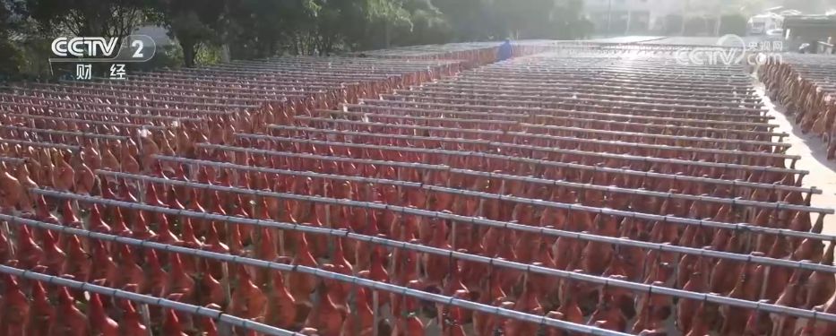 往常,晒水腿同样成为金华冬季的1说靓丽景色。正在那家百年水腿厂,数万只形如琵琶的水腿一律吊挂,工人们穿越期间,为水腿停止翻晒、塑形,保证每只水腿皆能匀称担当阳光的浸礼。